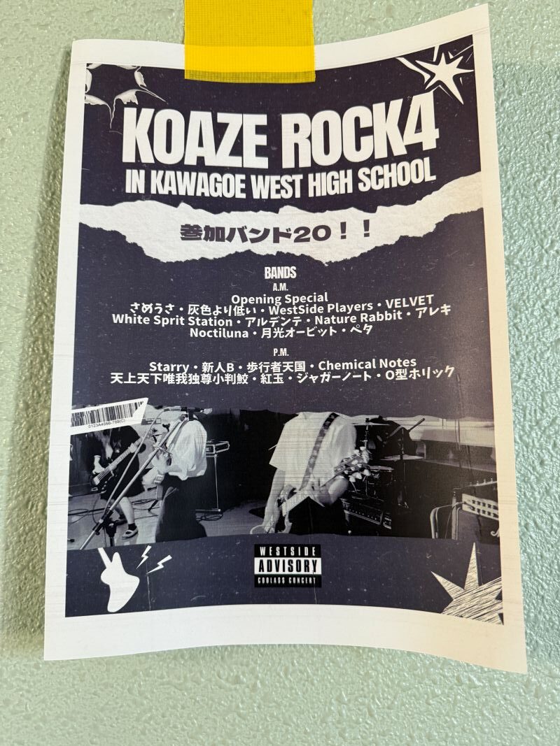先日、埼玉県立川越西高等学校主催の合同ライブ「小畔ロック」に一二年生バンドの「アレキ」と一年生バンド「紅玉」が参加し、オリジナル曲を2曲ずつ披露しました!