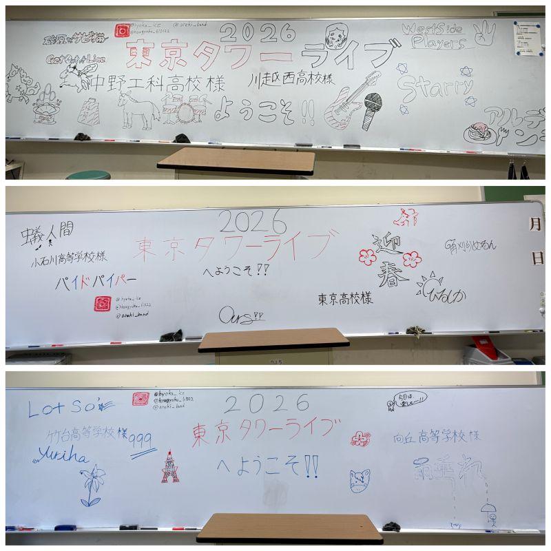 軽音楽部は川越西高校、小石川中等教育学校、竹台高校、東京高校、中野工科高校(1月11日)、小川高校、九段中等教育学校、小石川中等教育学校、大東文化第一高校、明星高校(1月12日祝)をお招きして、音楽室にて本校主催の合同ライブ「東京タワーライブ」を開催しました!