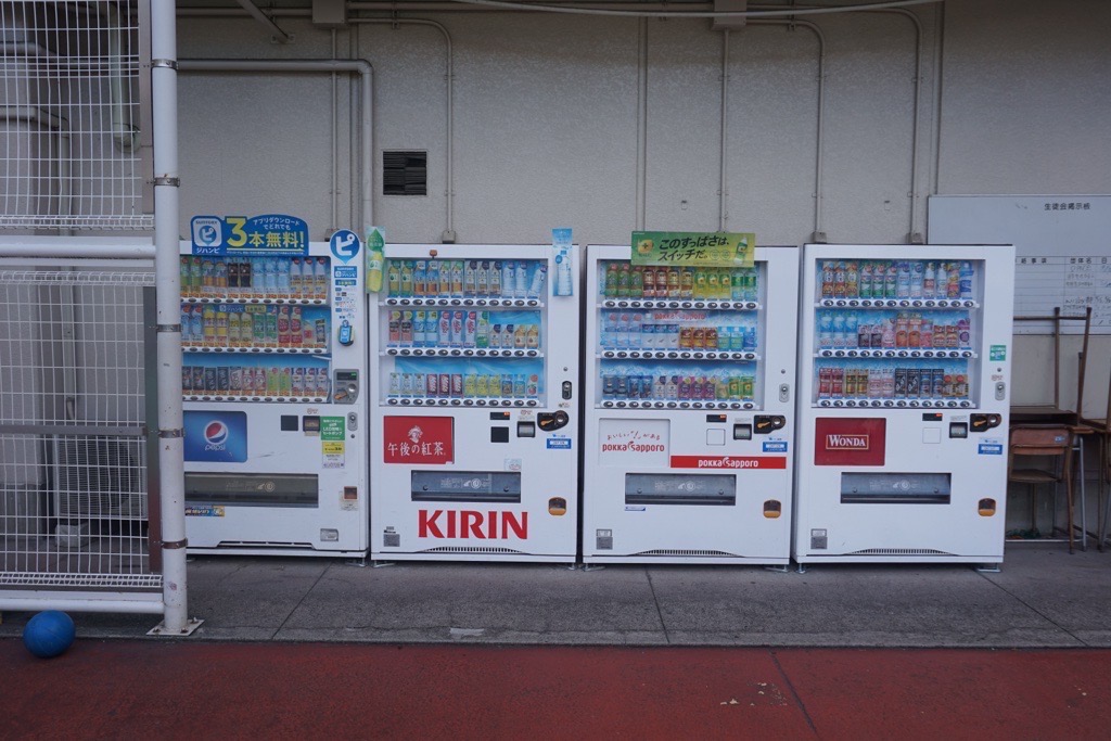 正則高校には食品用自販機が2台、飲料自販機が5台あります。