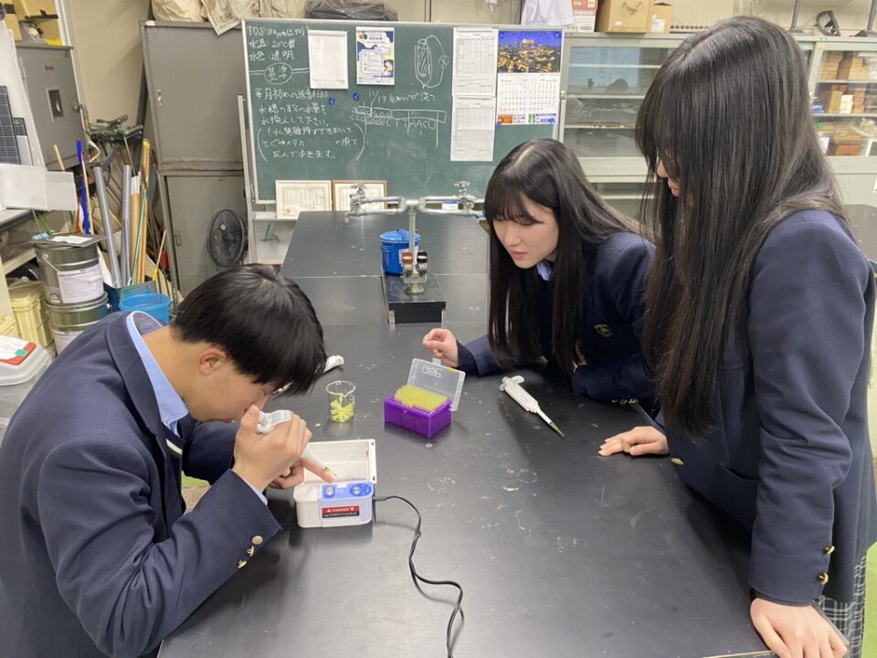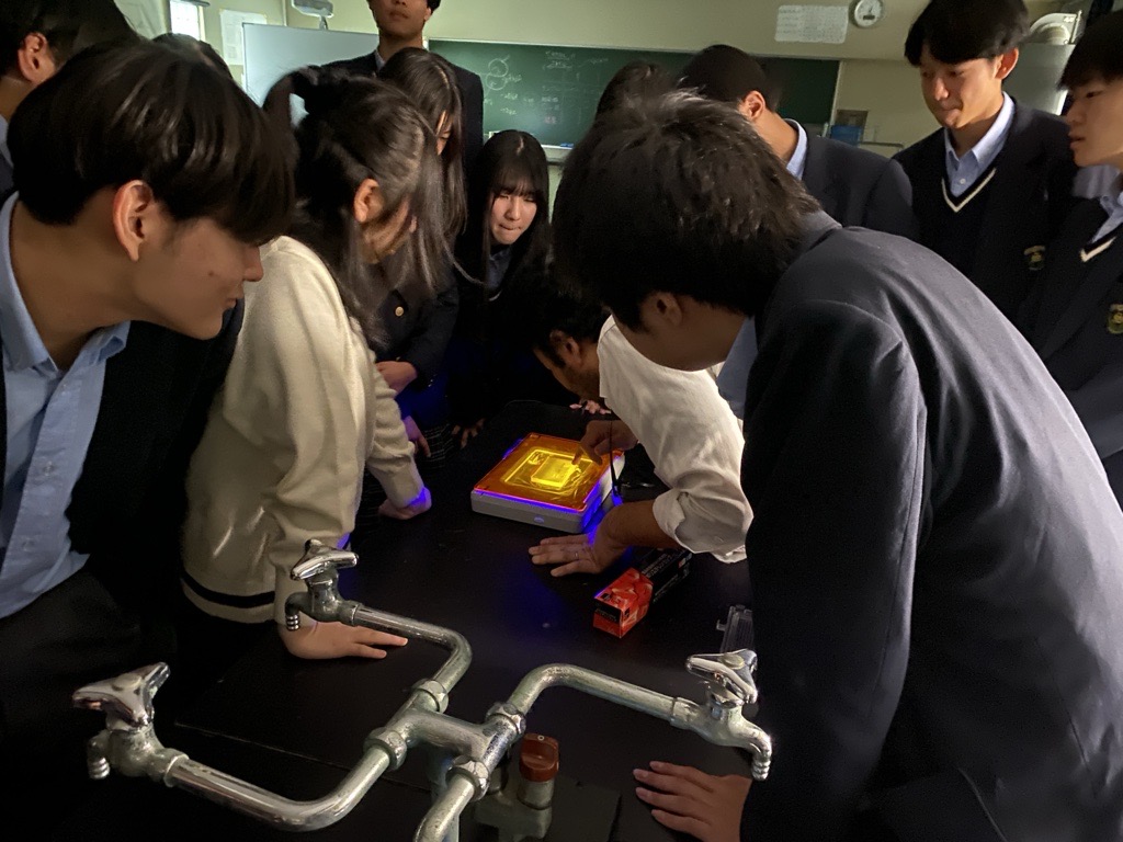 持ち寄ったサンプルはヨーグルトや河川の水、花壇の土、ペットの鼻水など多岐にわたります。そのサンプルからDNAを抽出し、PCR法でDNAを増幅させて電気泳動法で検出するまでを一気に行い、不慣れな中でも生徒はいきいきと活動していました。