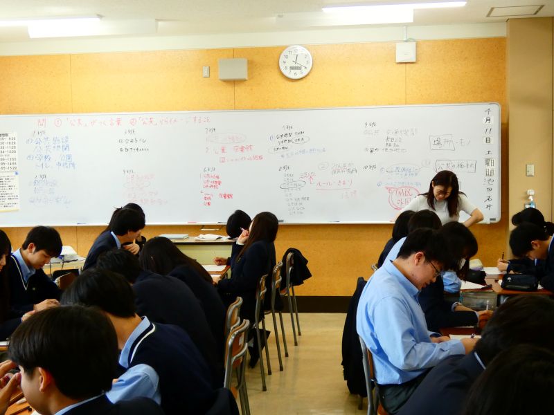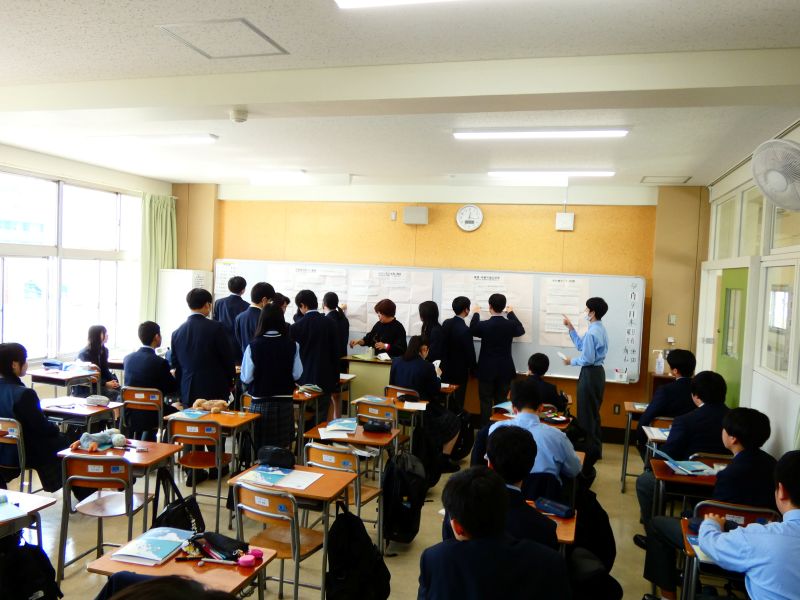 公共・数学ではグループ学習が行われていました。